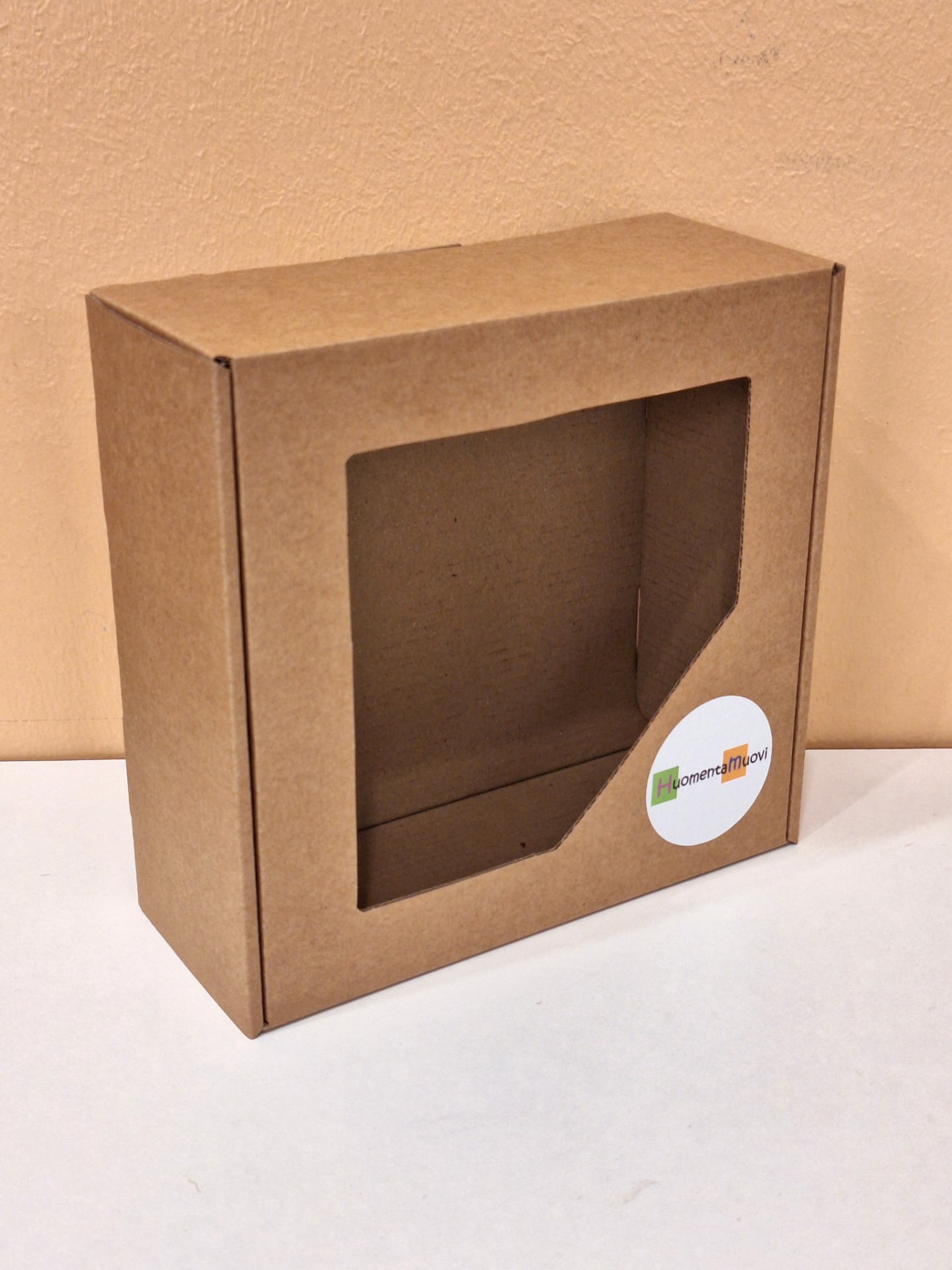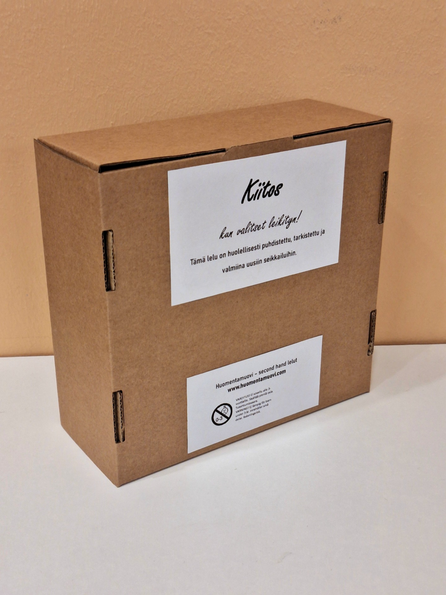 Ruskea pahvinen luukullinen tuotepakkaus tuotetarroilla. Ulkomitat 17,5 x 16,5 x 7,5 cm. Sisätilan mitat noin 16 x 16 x 7 cm. Toimitetetaan taiteltuna, tuote sisään pakattuna.