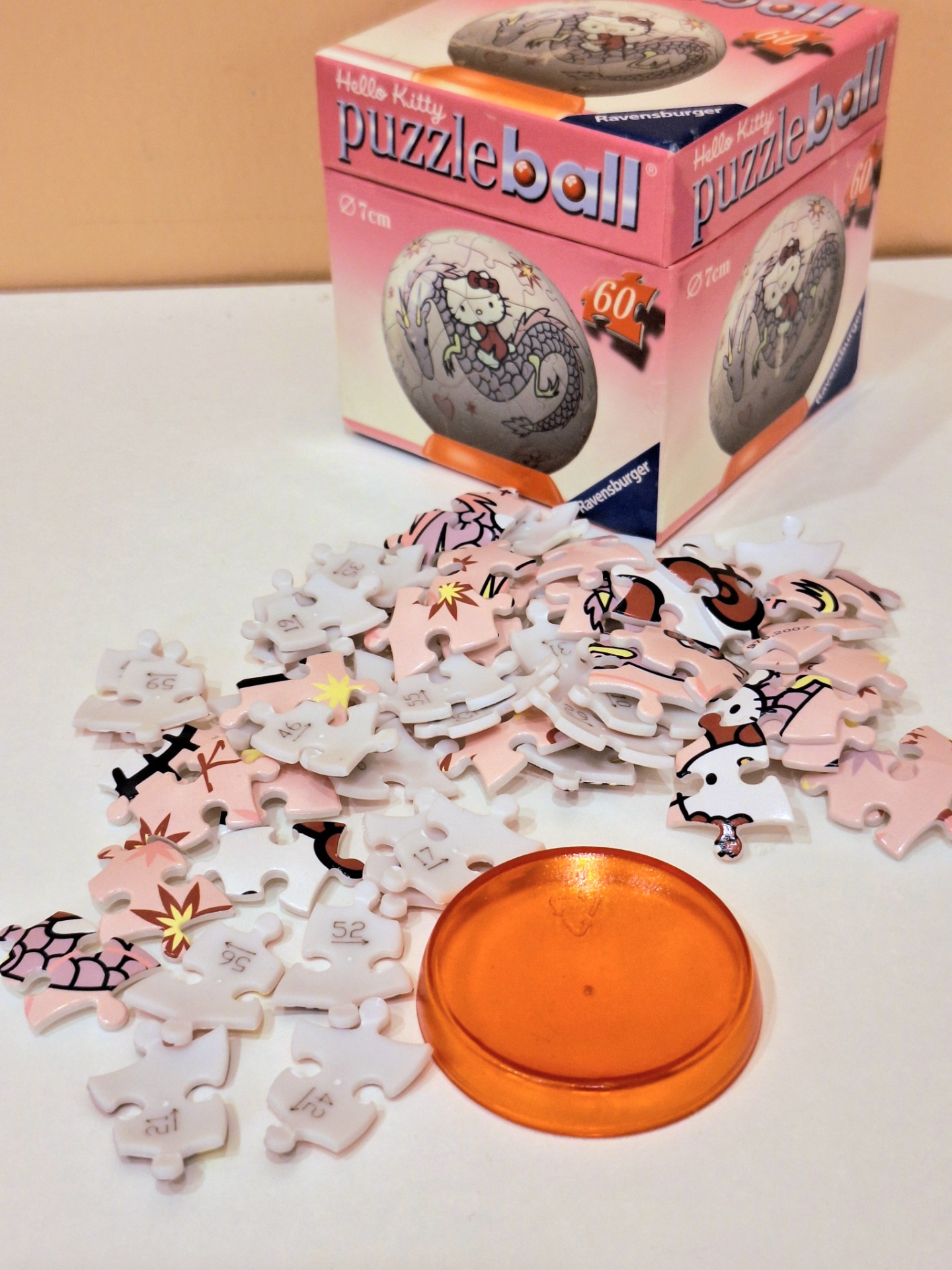 Hello Kitty aiheinen 3D pallopalapeli. Ehjä käytetty kunto. Kaikki palat tallella. Muovia. Merkki Ravensburger. Pakkauksen mitat 8x8x8 cm. CE merkintä: kyllä, pakkauksessa