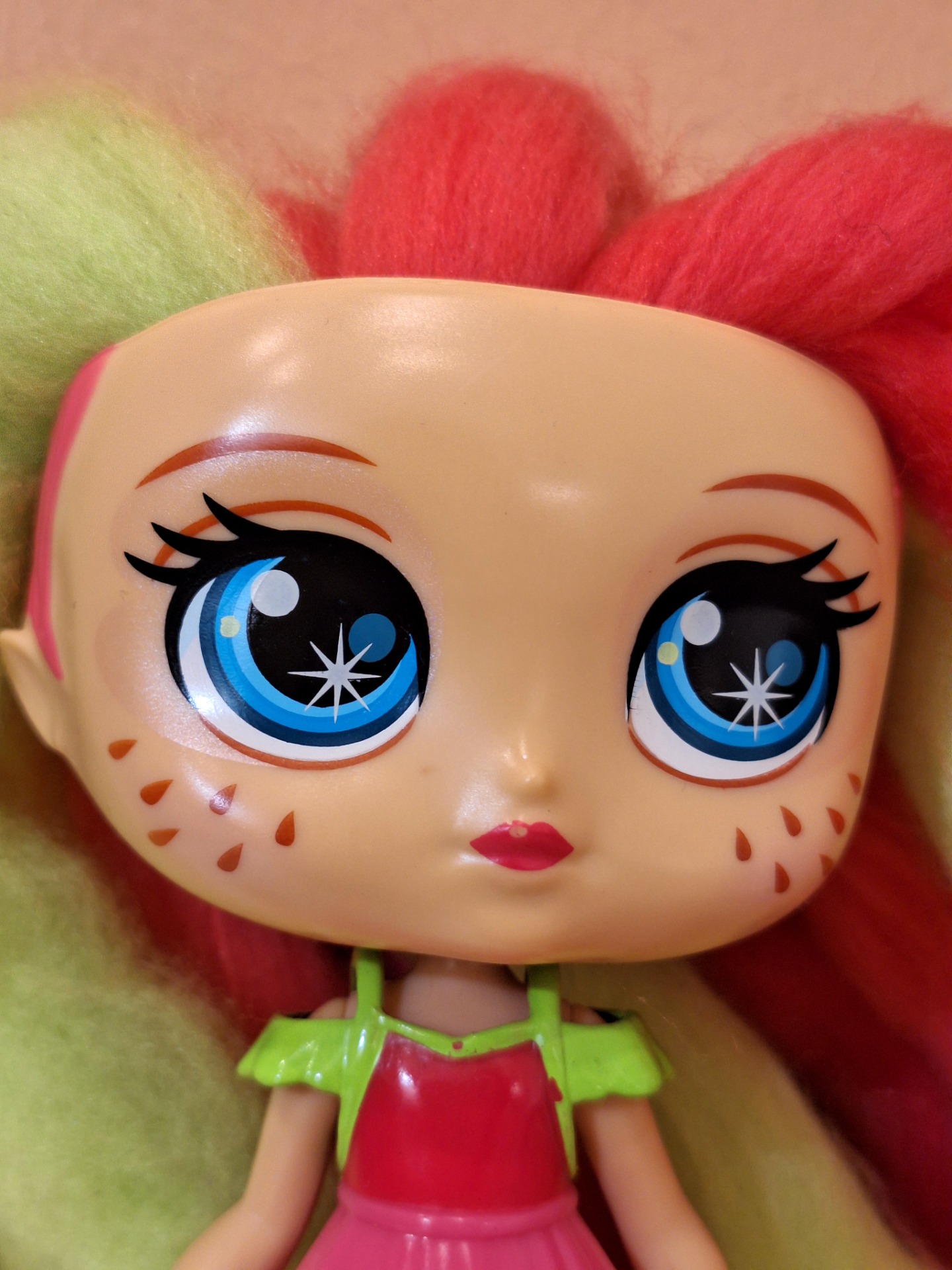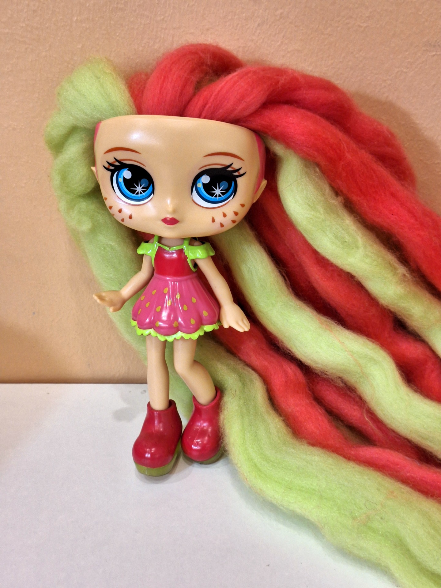 Iso Candylocks nukke hattarahiuksilla. Ehjä leikitty kunto. Pituus noin 18 cm.