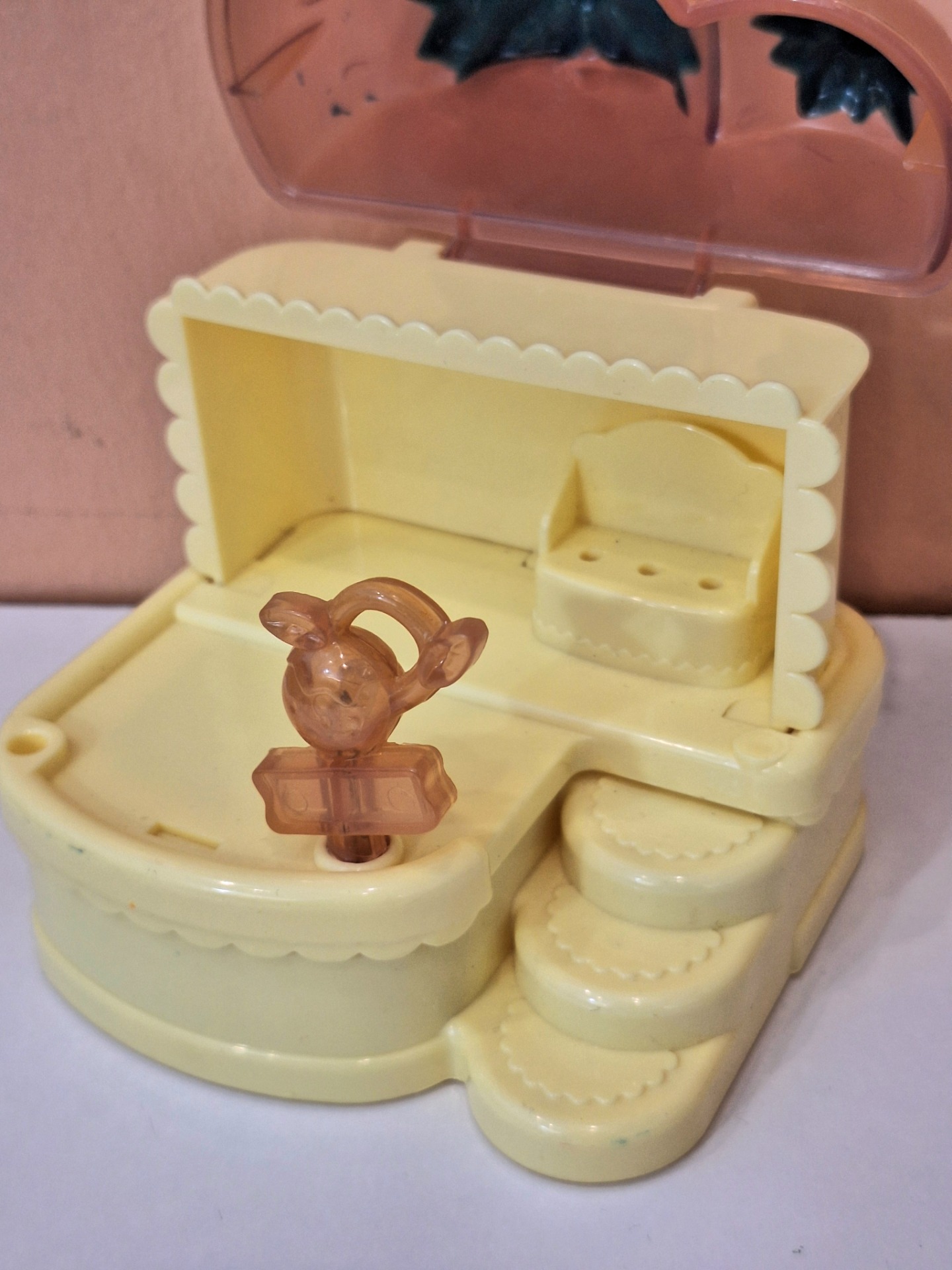 Hello Kitty Ice Cream Shop jäätelökioski. Leikitty kunto. Osia puuttuu. Valo ei toimi. Korkeus 13 cm.