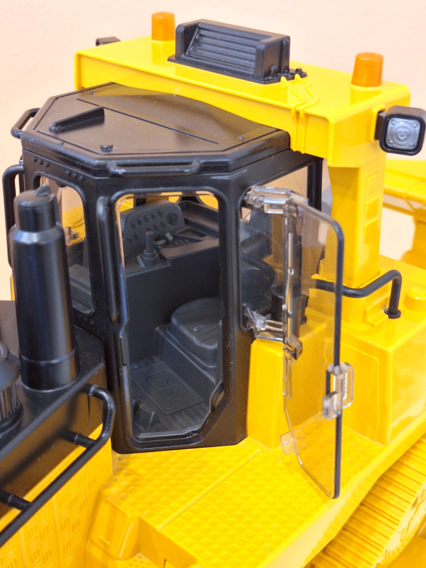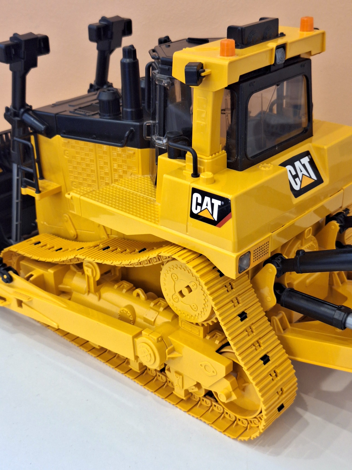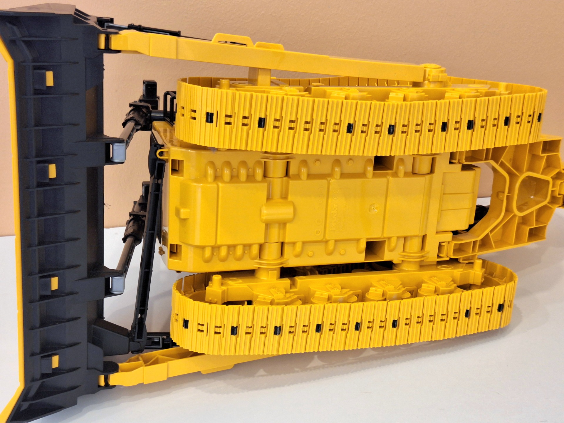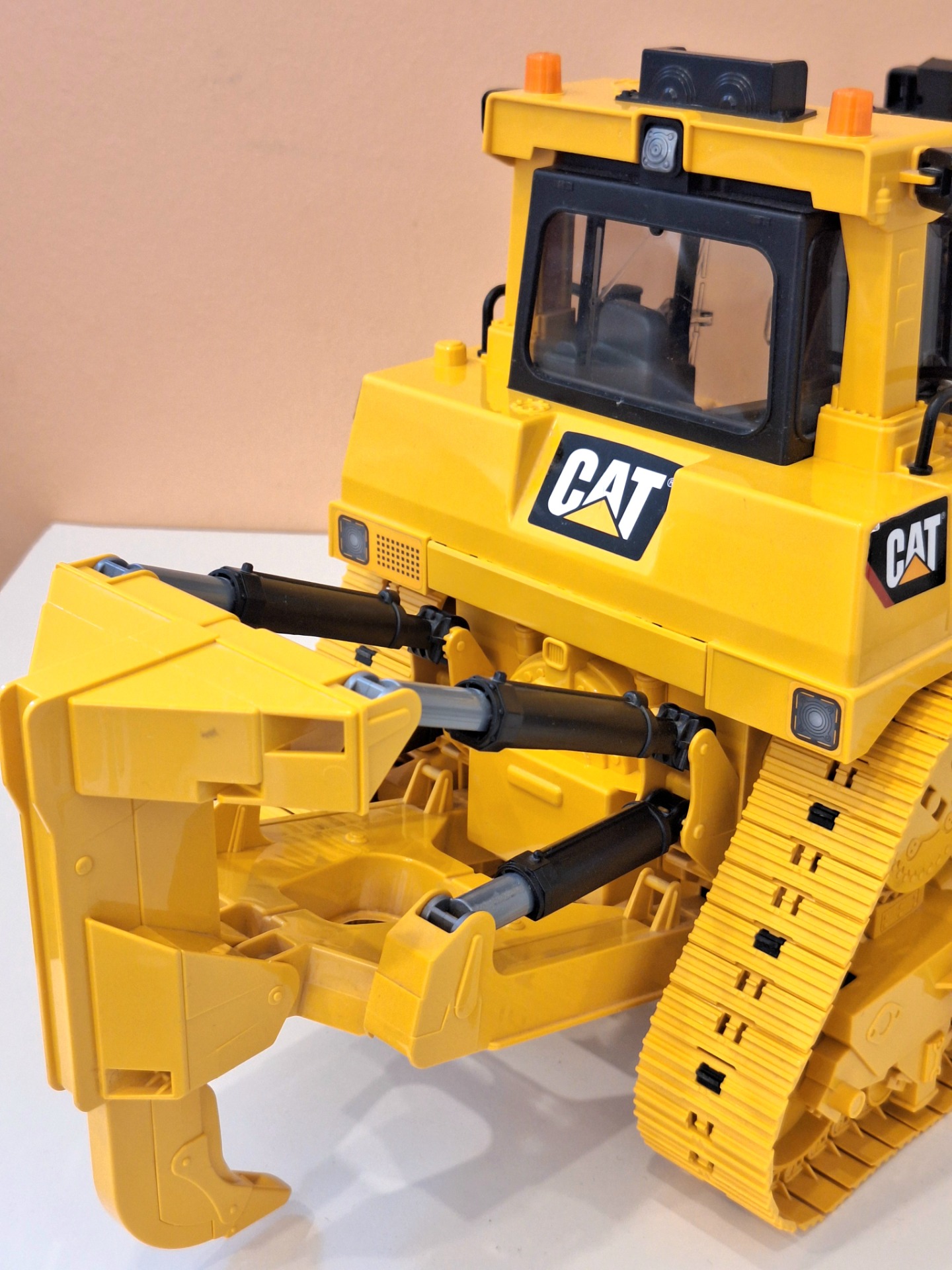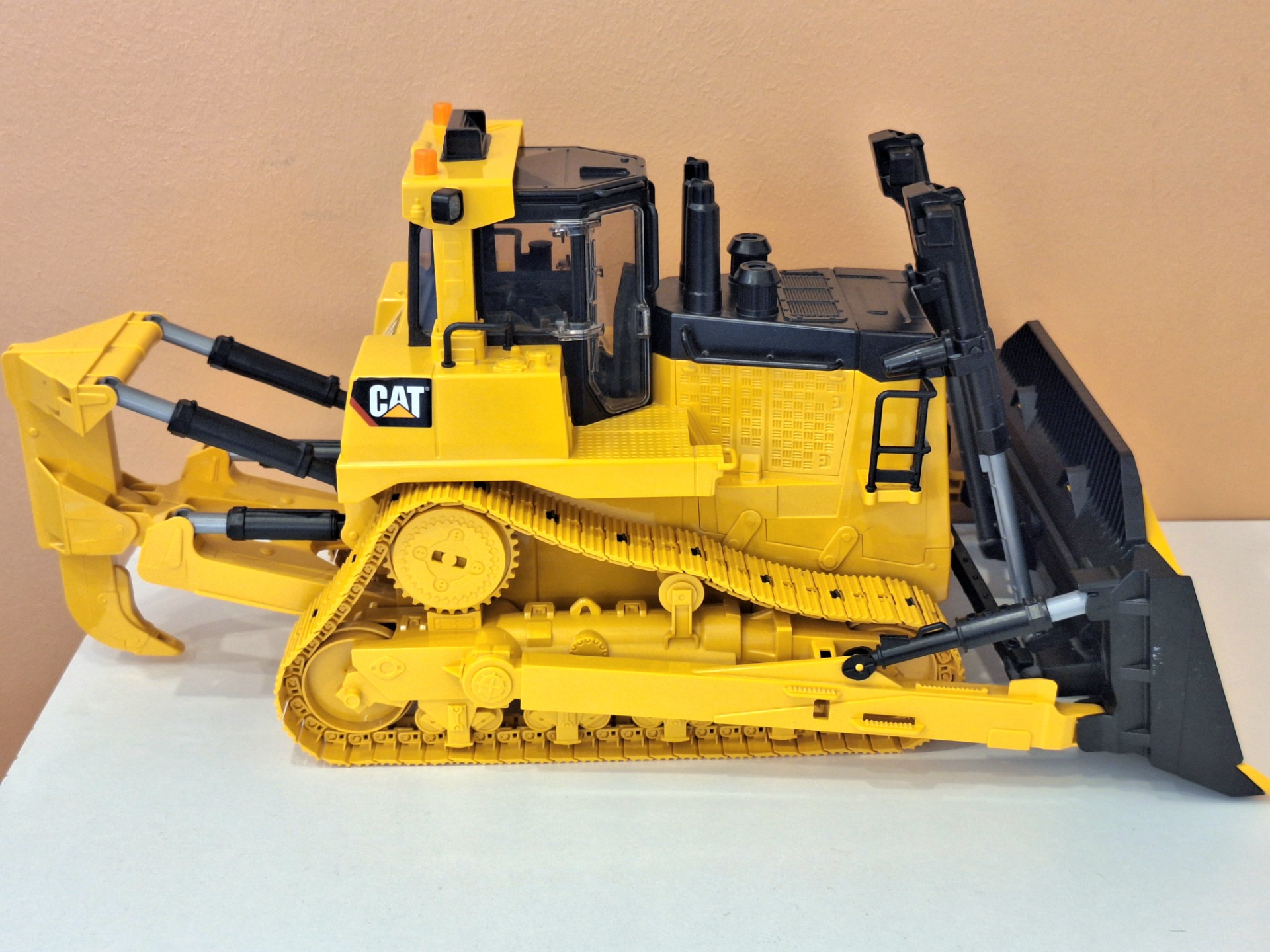 Bruder Caterpillar puskutraktori. Ehjä siisti leikitty kunto. Kaikki osat tallessa. Toiminnot toimii. Mitat 54 x 28,5 x 27 cm.