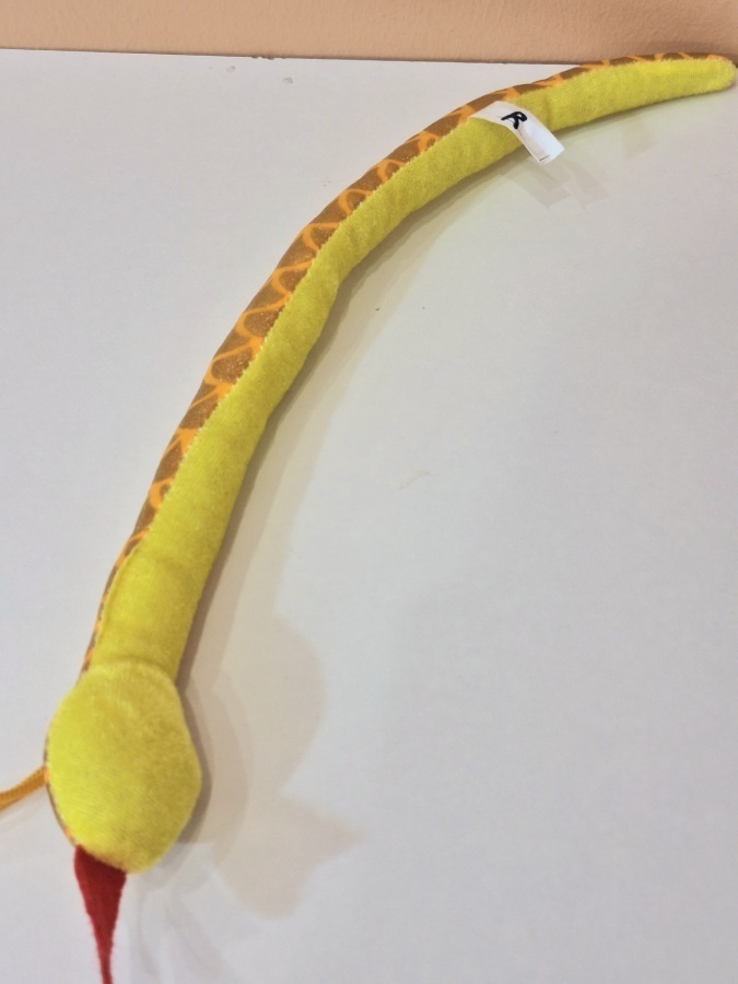 Käärme pehmolelu. Leikitty kunto. Saumaa korjattu. Pituus noin 37 cm.