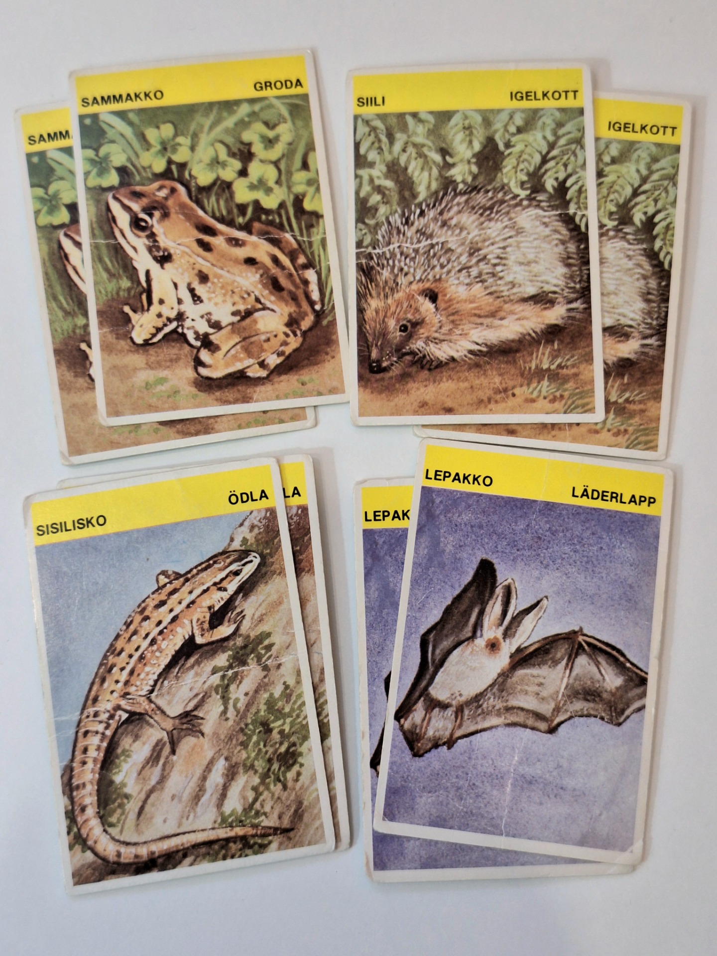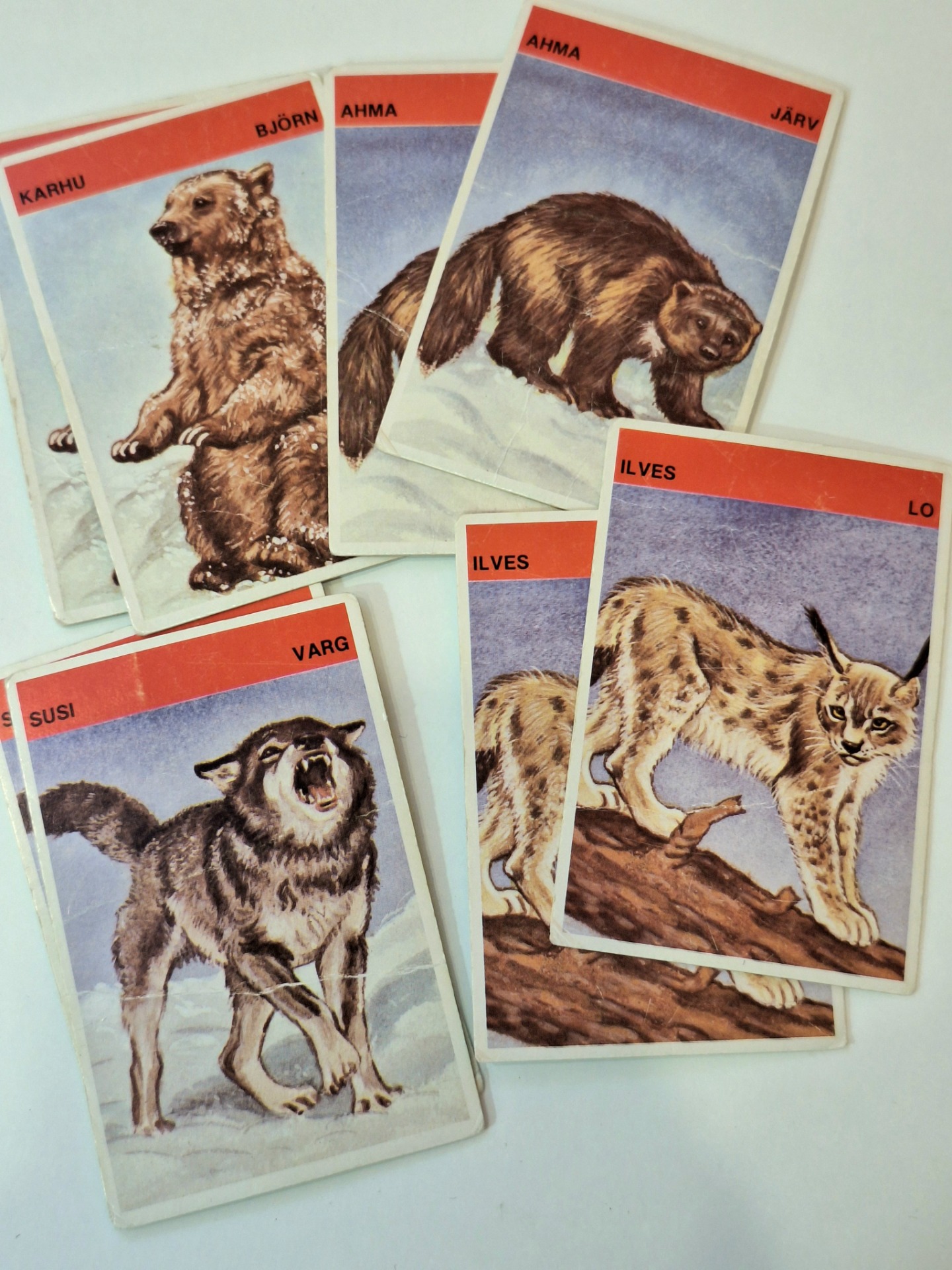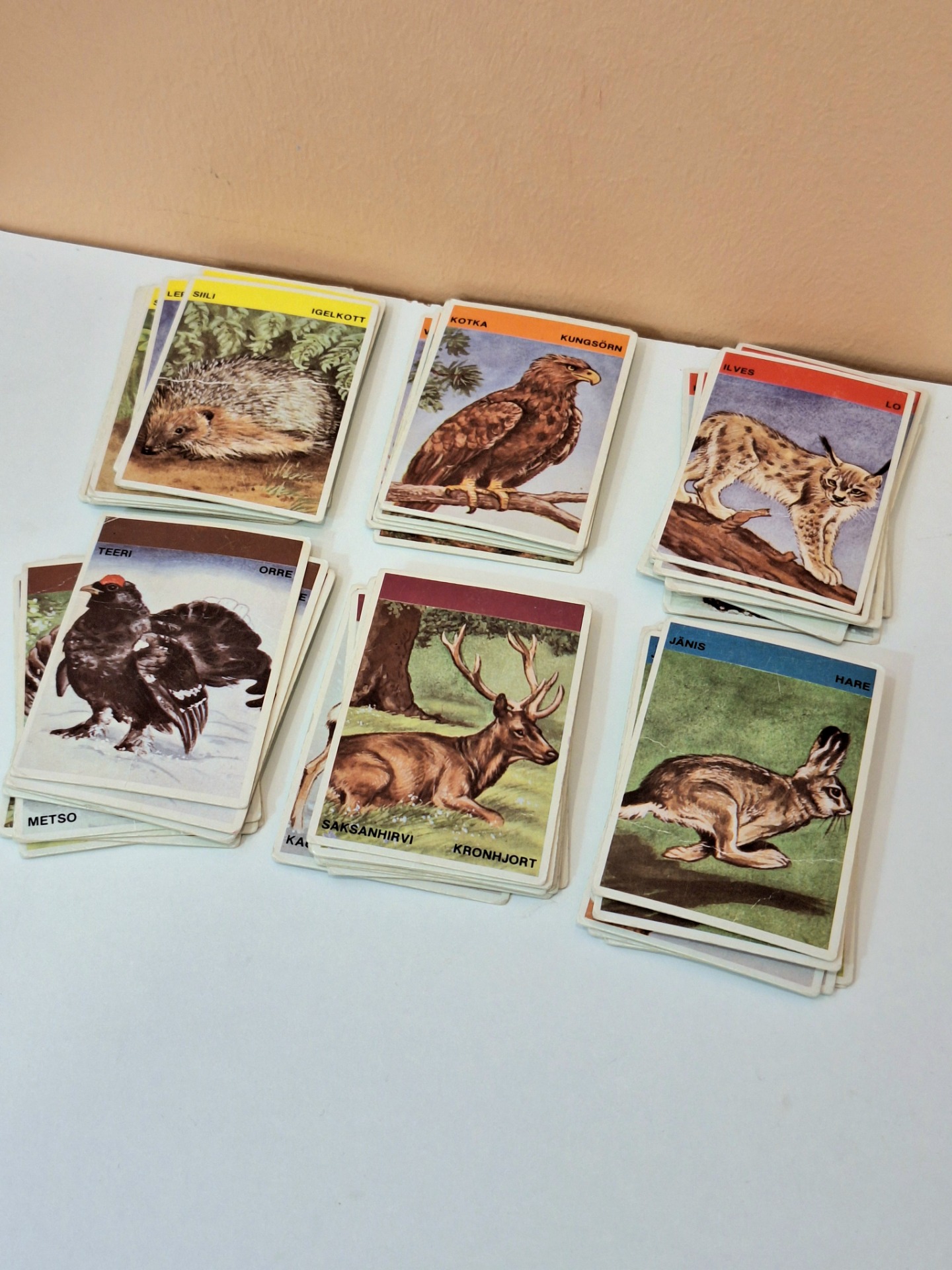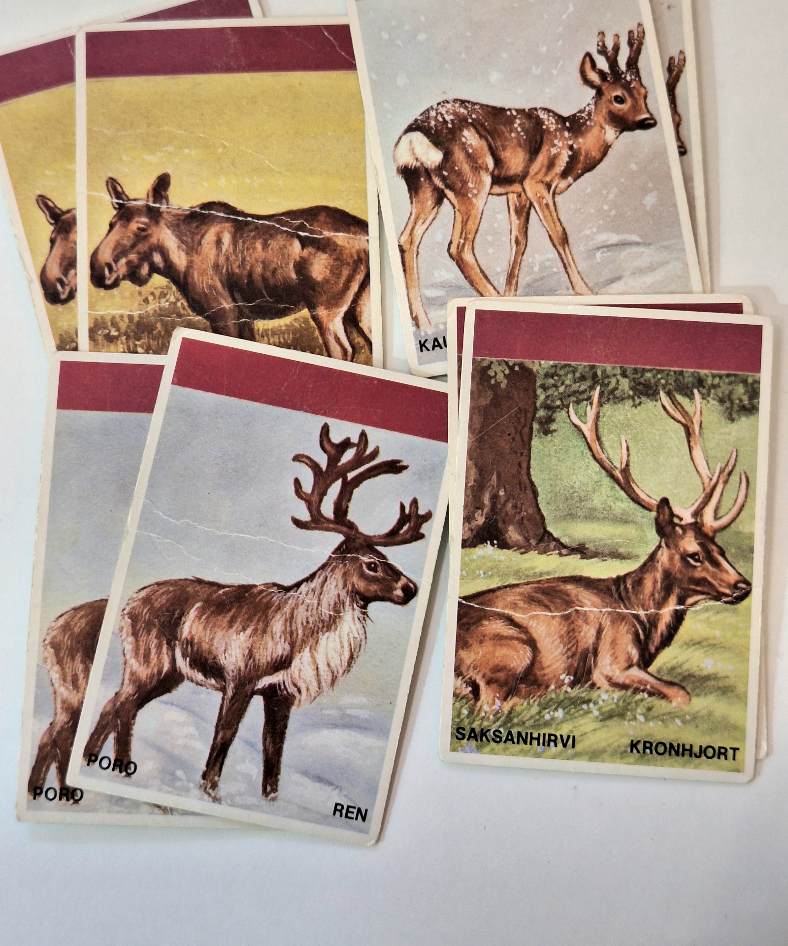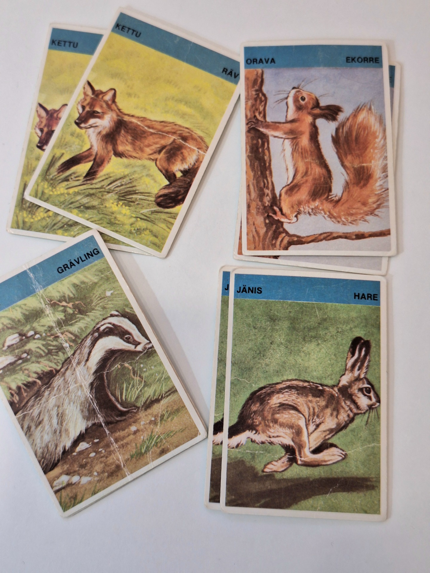 Metsän eläimet korttipeli. Pelattu kunto. Kortit ehjiä. Kaikki tallella paitsi korppi kortit.