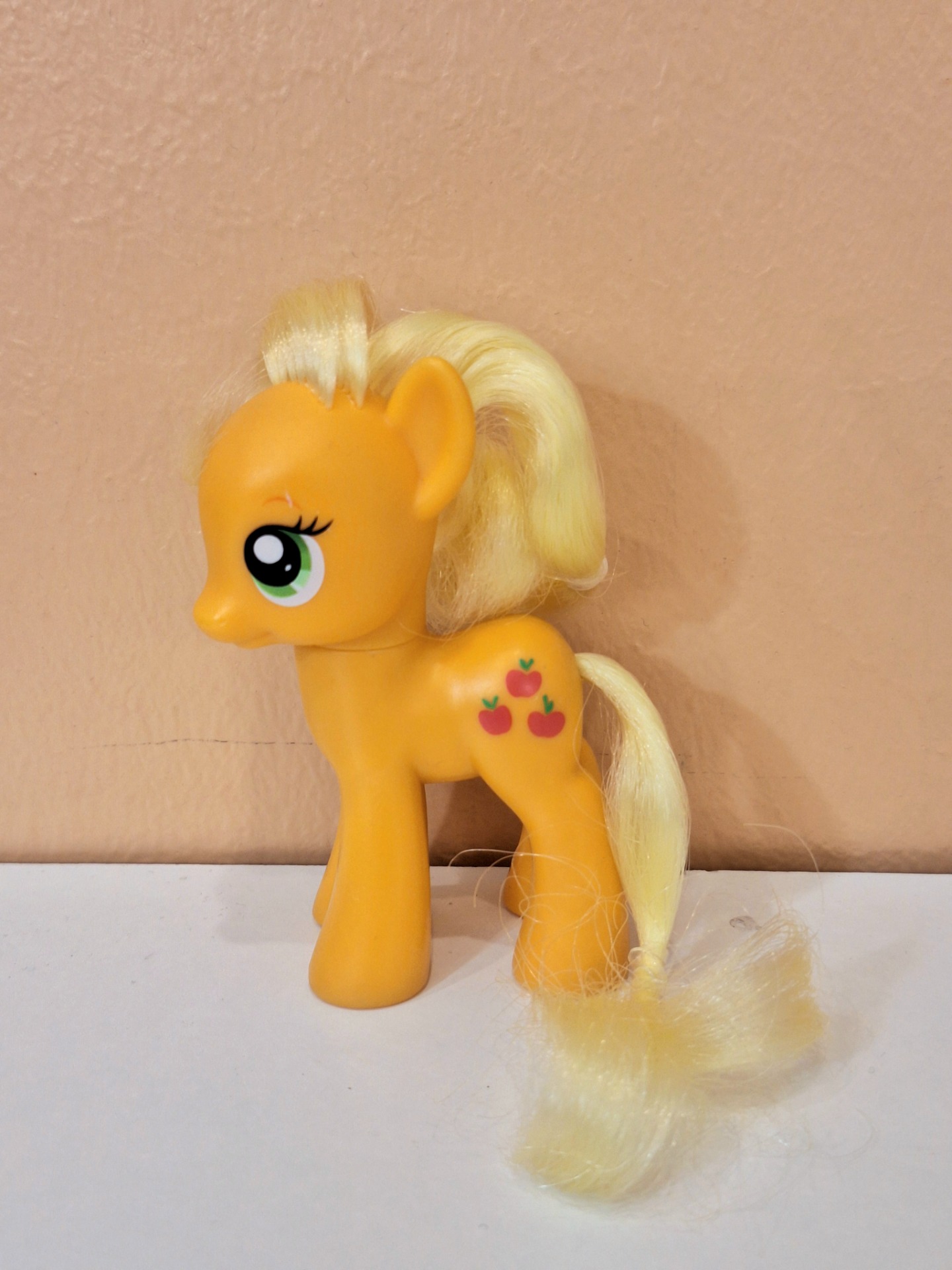 My Little Pony Applejack. Ehjä siisti vähän leikitty kunto. Harja ja häntä sileät. Korkeus noin 8 cm.