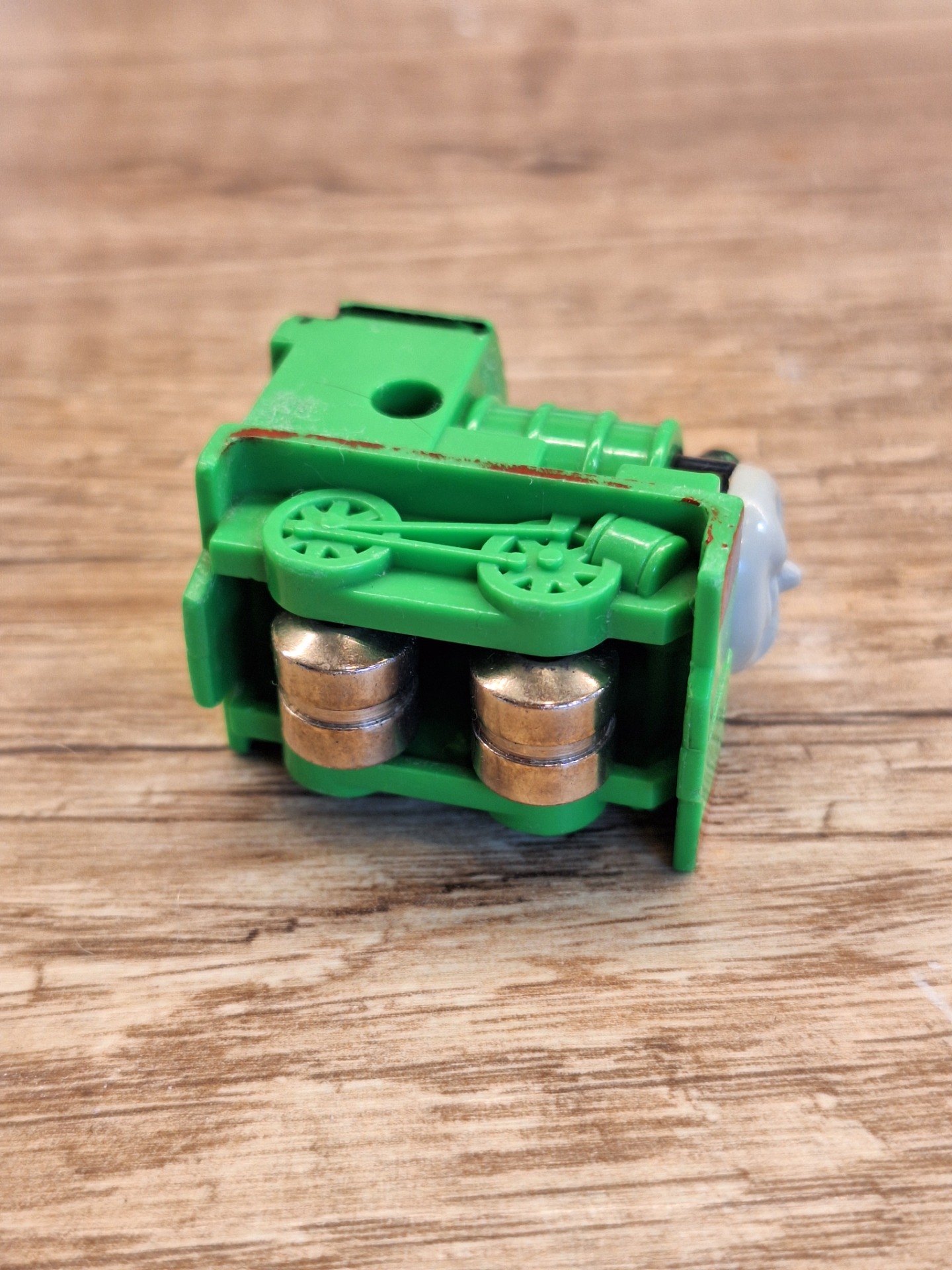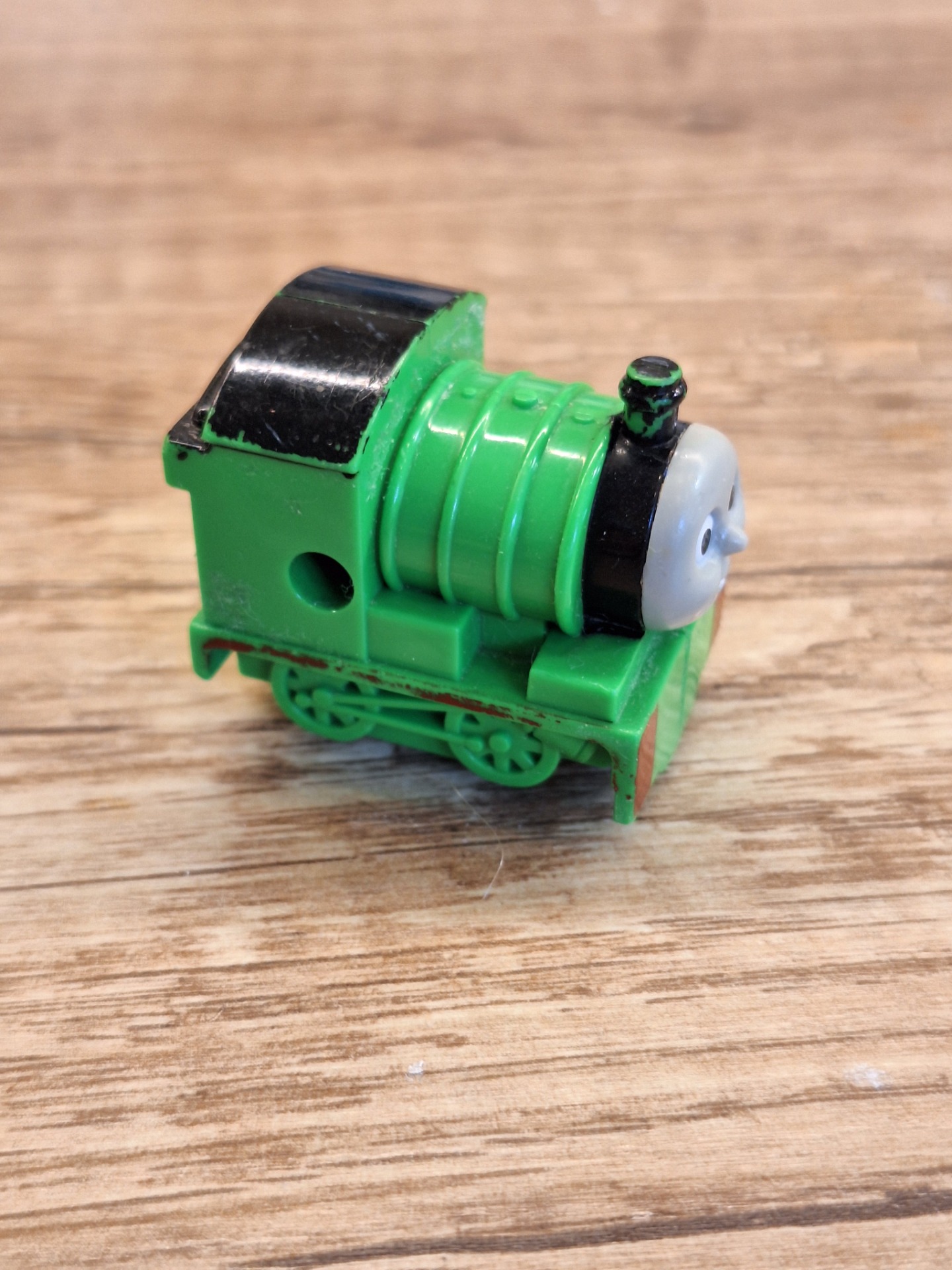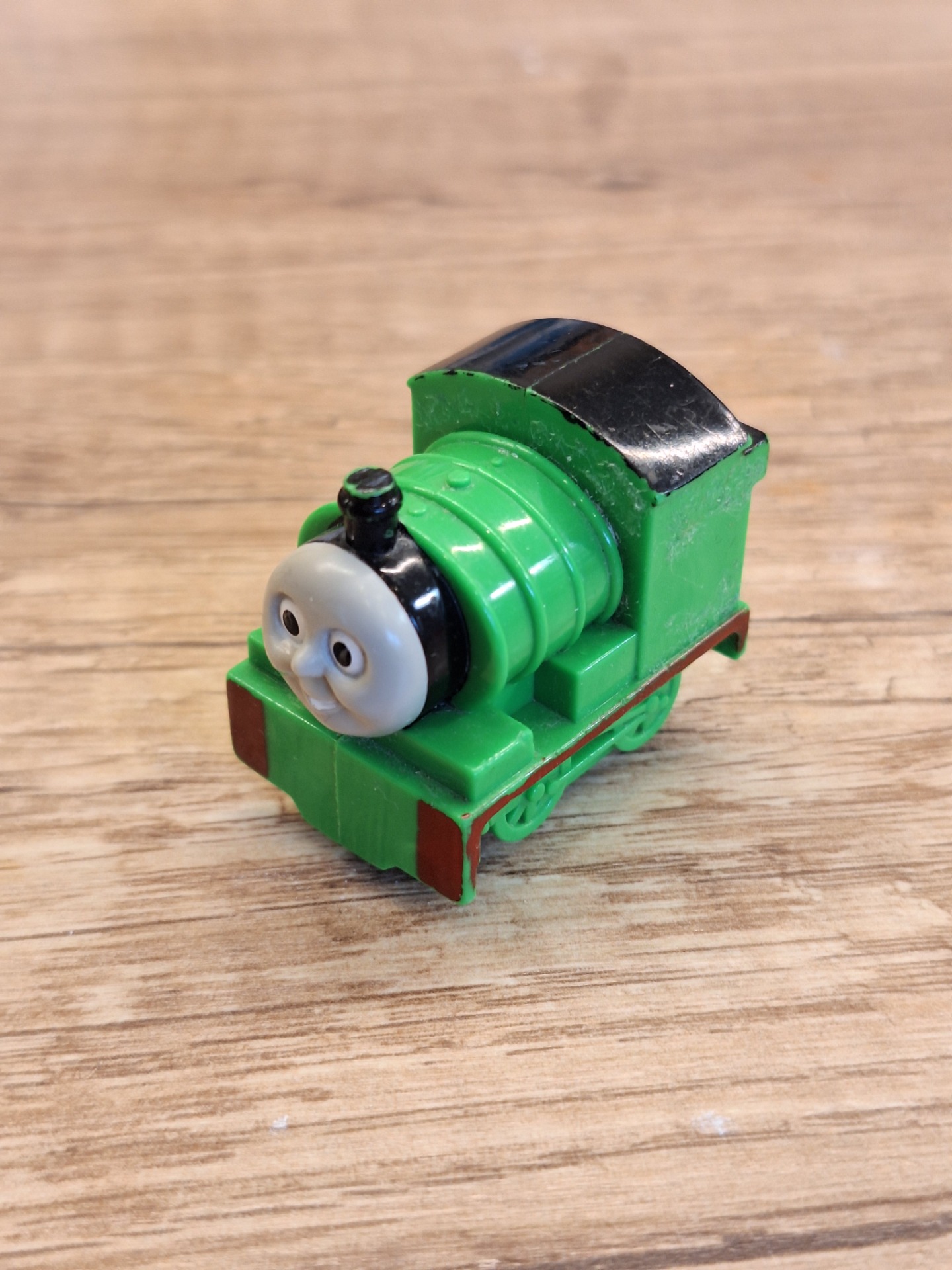 Pieni Tuomas veturi juna. Ehjä leikitty kunto. Pituus 3,5 cm. Merkintä M.E.G.
