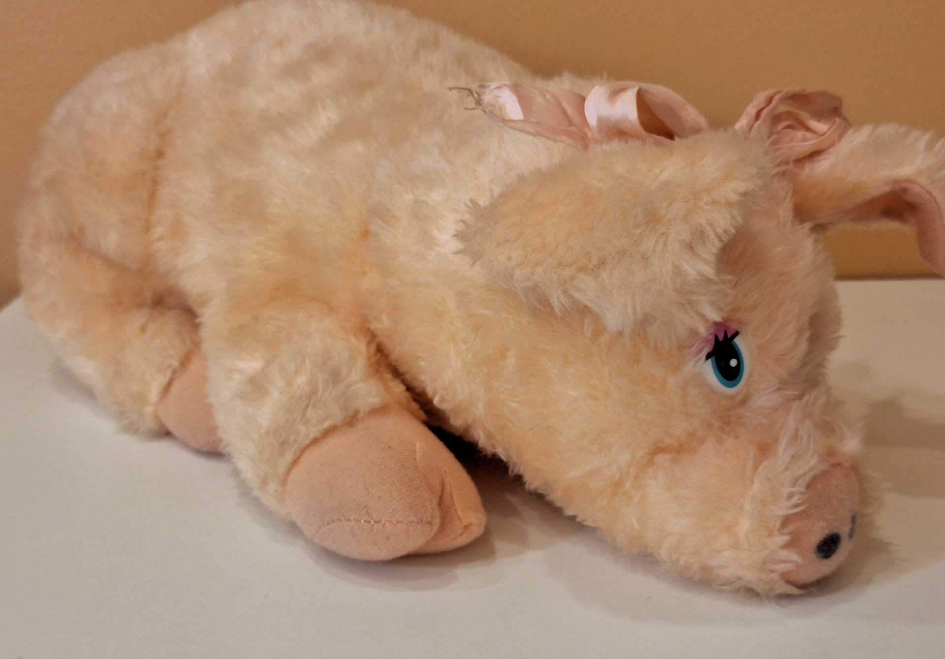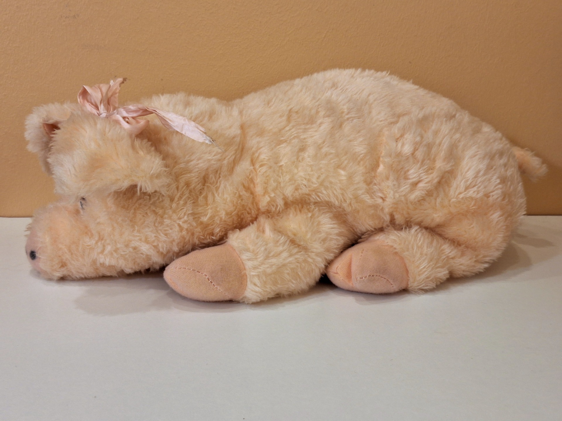 Vintage possu pehmo. Ehjä leikitty kunto. Korvat eri asentoihin taivuteltavat. Pituus noin 45 cm.