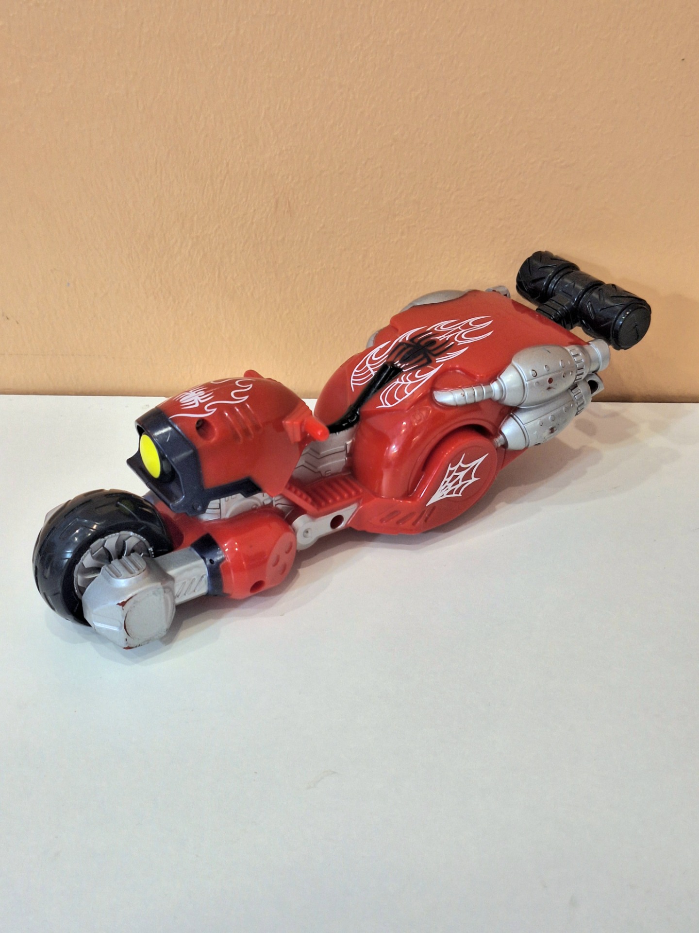 Playskool Heroes Spiderman moottoripyörä. Ehjä leikitty kunto. Pituus noin 22 cm.