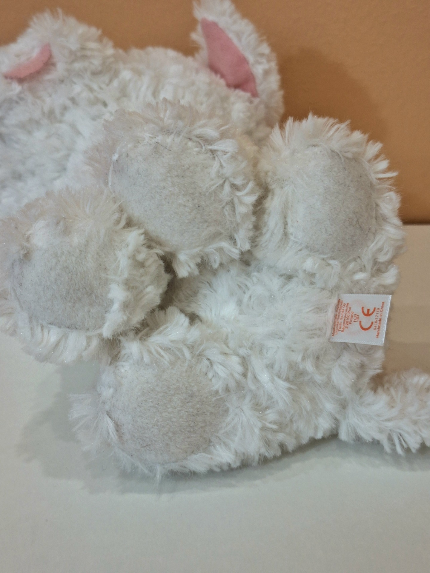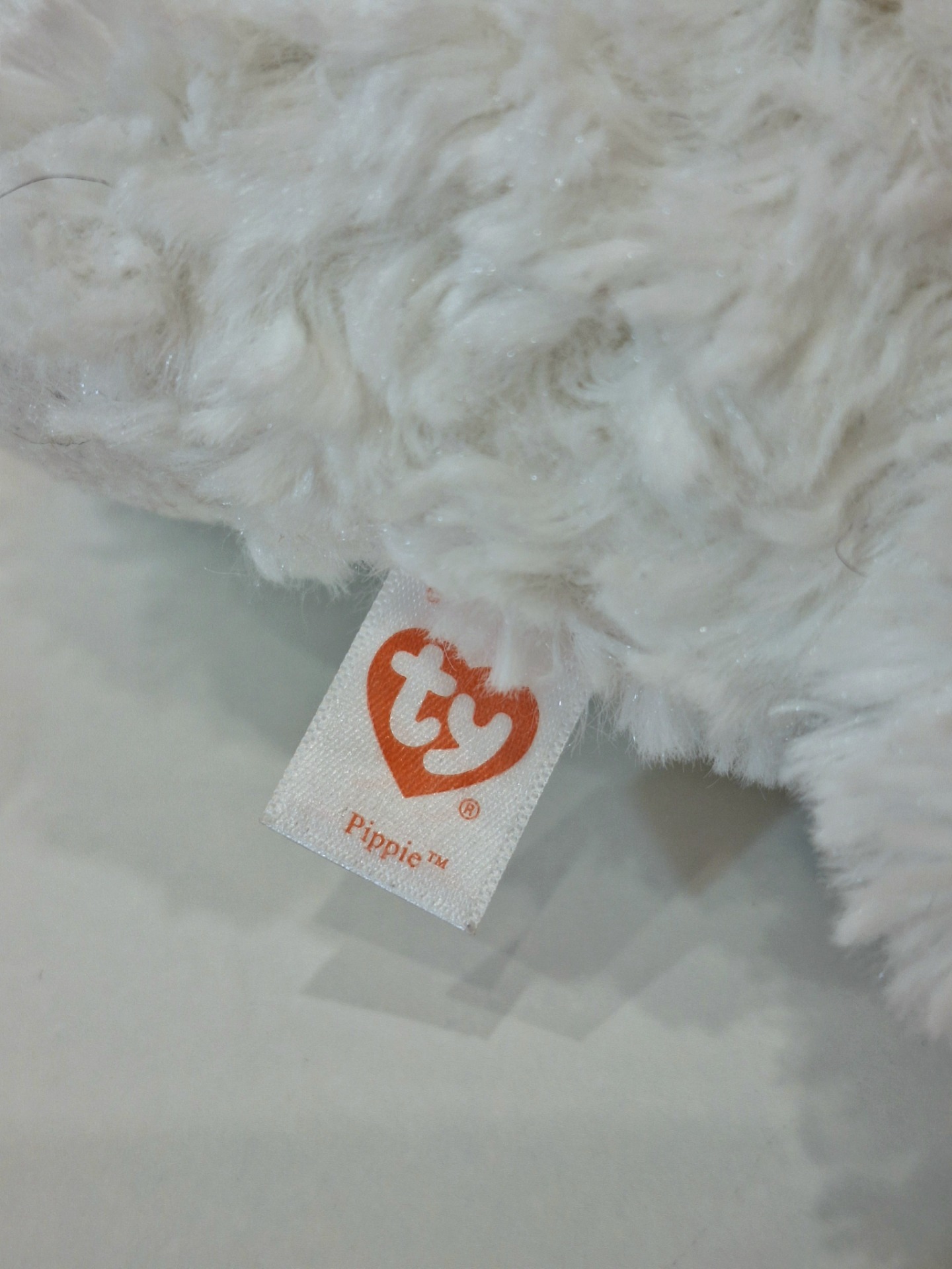 Ty valkoinen koira pehmolelu. Ehjä leikitty kunto. Korkeus noin 21 cm. Silmissä kulumaa.